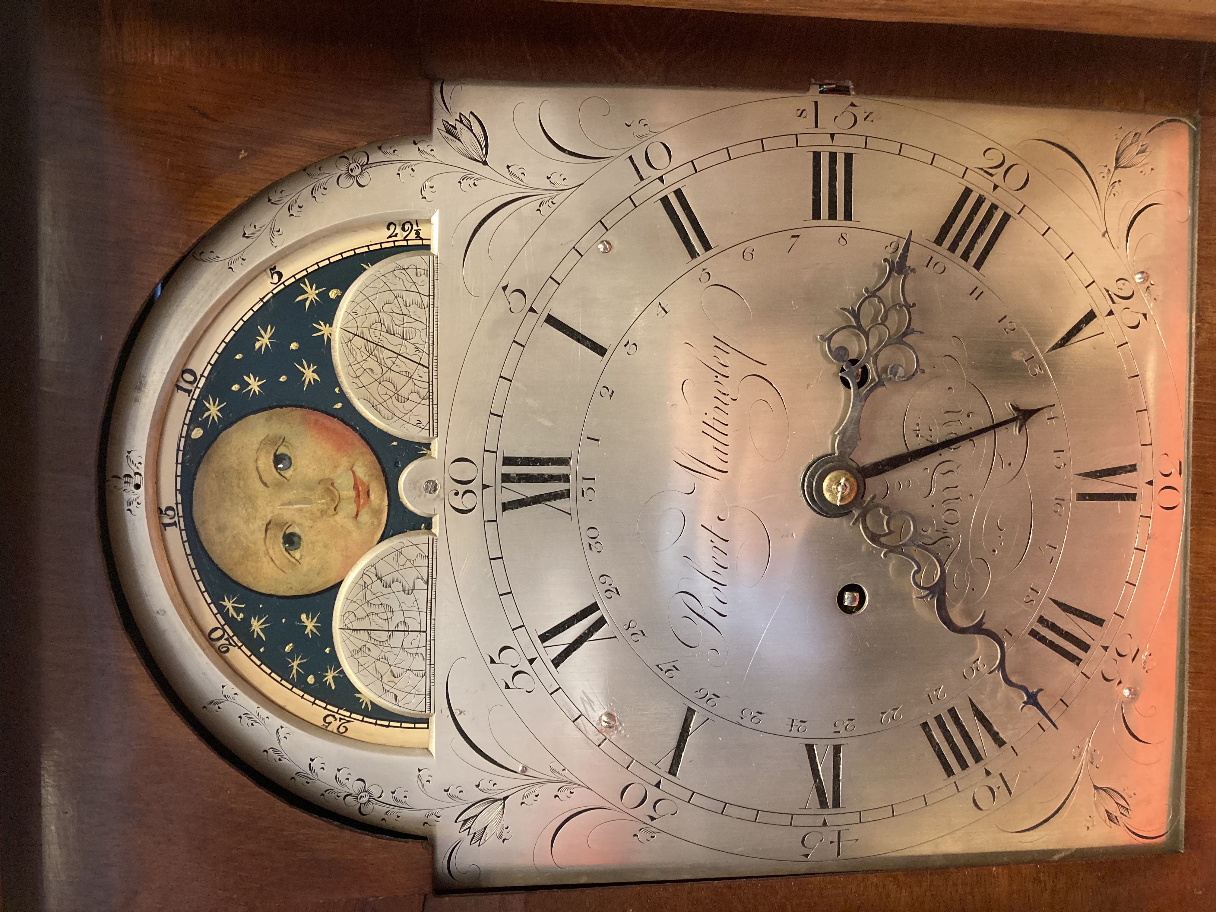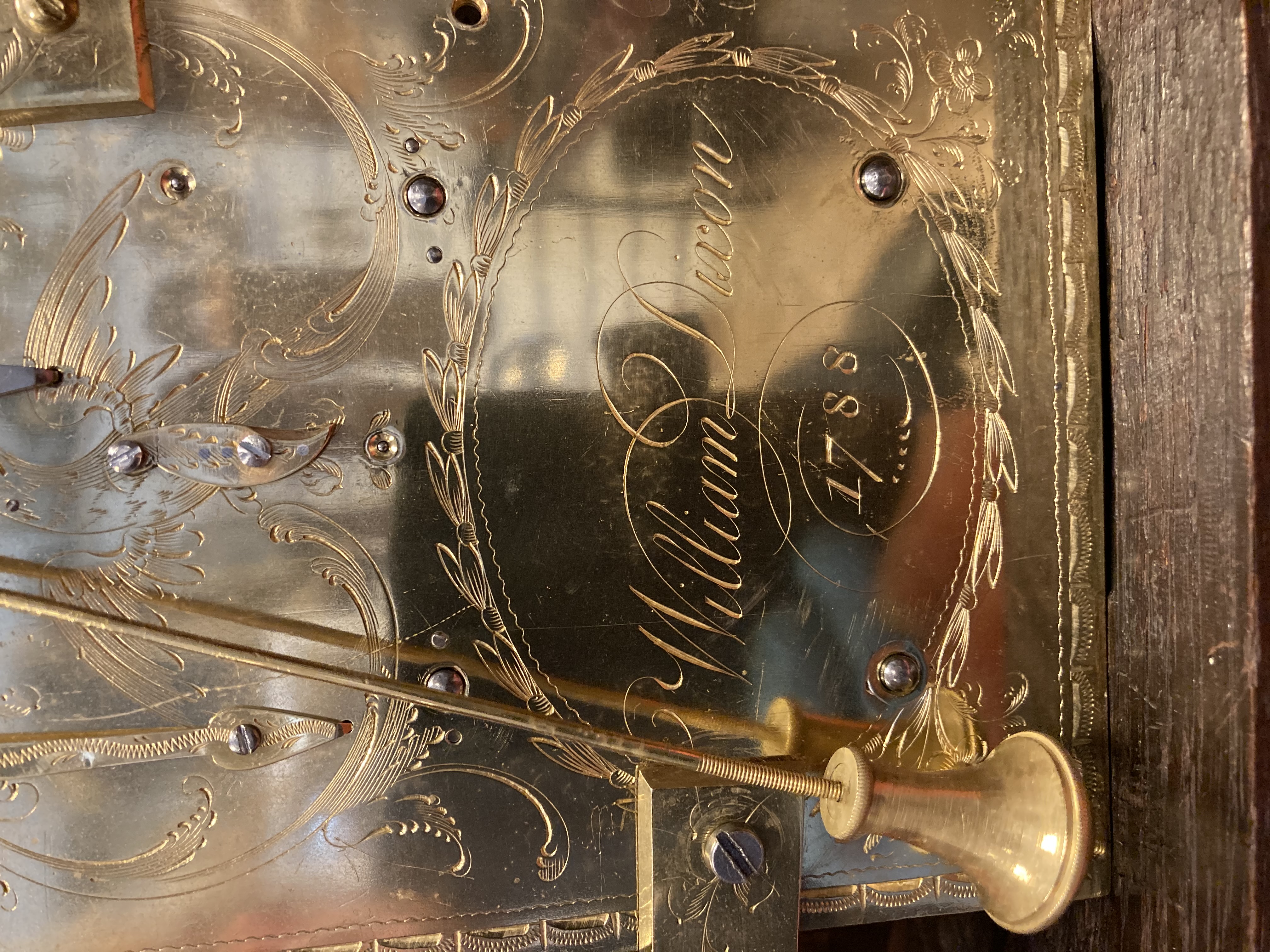 Op de wijzerplaat staat de naam van Thomas Tompion. Eén van de grootste uurwerkmakers in Engeland periode 1690. Er zit een heel mooi degelijk uurwerk in, maar het geen echte Tompion. Jammer maar wel een mooie klok!